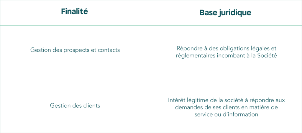 Lorsque nous sommes amenés à traiter vos données, nous le faisons pour des finalités bien spécifiques. Chaque traitement de données mis en œuvre poursuit une finalité légitime, déterminée et explicite.